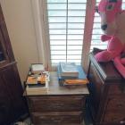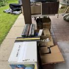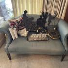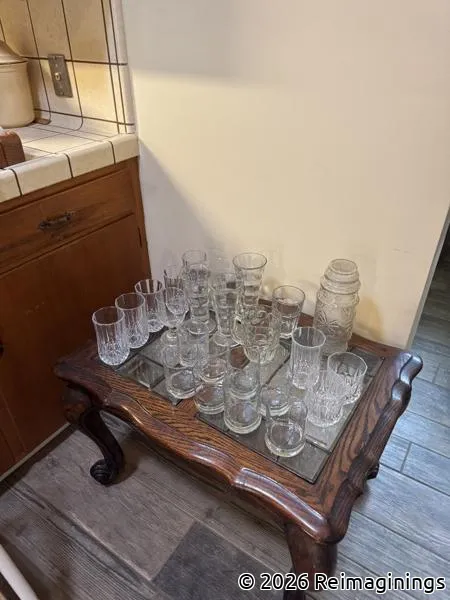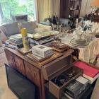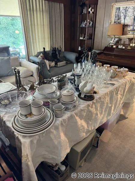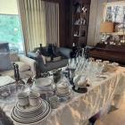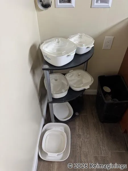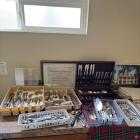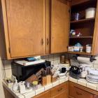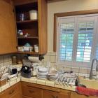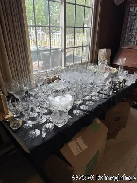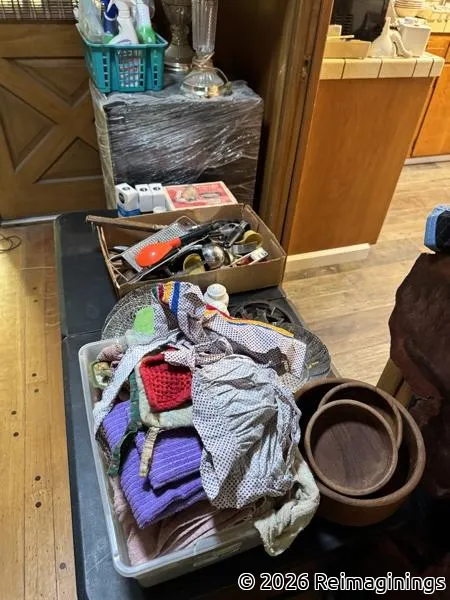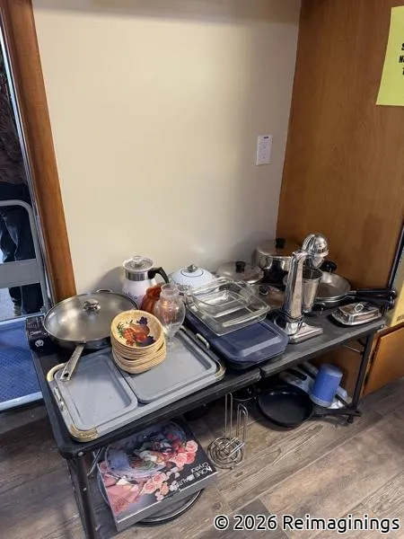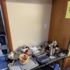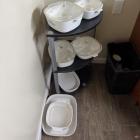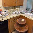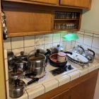 -lots of kitchen items, pots and pans glassware, silverware, Corning ware,