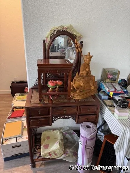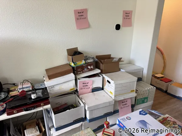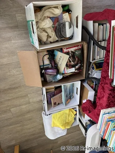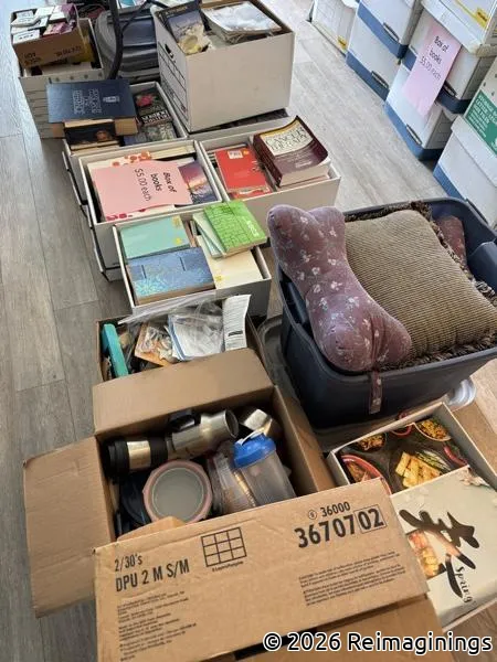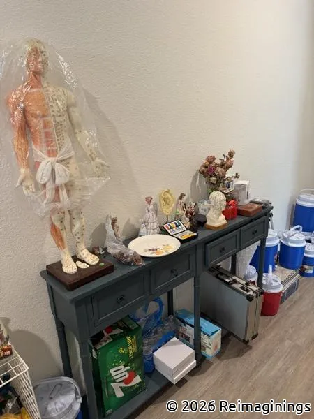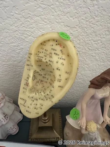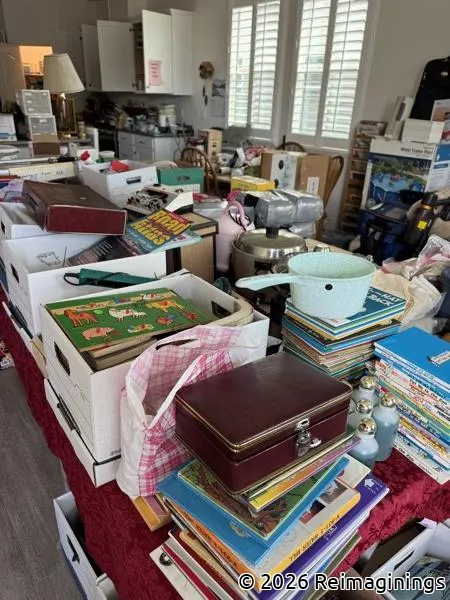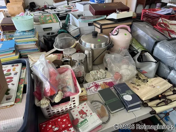 House is full of home goods, designer fashion, and the contents of the owner’s two businesses: a used book store and an Eastern medicine and acupuncture.